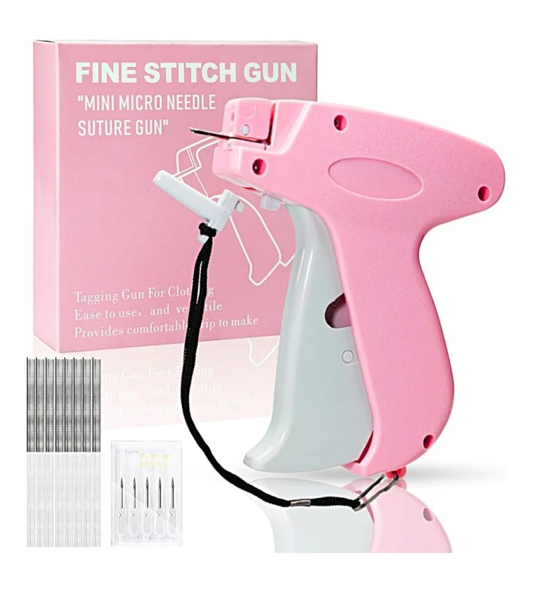 Handheld fine stitch gun for quick and easy clothing repairs, ideal for attaching labels, tags, or fixing fabrics without the