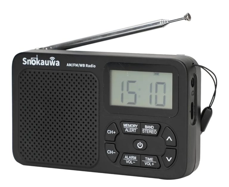 Portable emergency weather radio with AM/FM/NOAA channels, digital tuner, dual mode storage, and sleep timer, ideal for home, travel, and