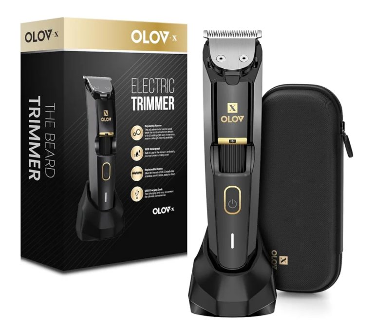 Men’s beard trimmer with sharp precision blades, adjustable length settings, and rechargeable design for effortless grooming and styling.