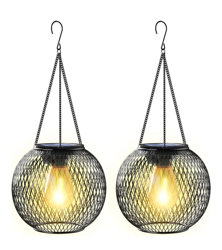 2 Pack Solar Lanterns – Elegant outdoor lanterns powered by solar energy, featuring warm LED lights for a cozy glow.