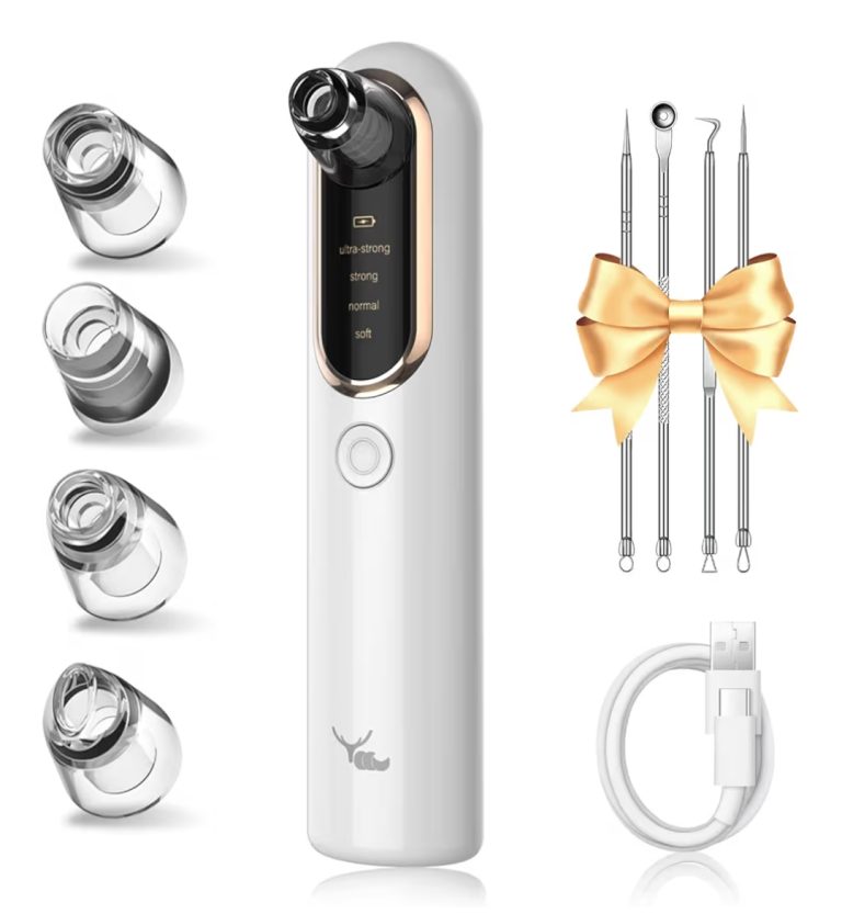 A blackhead remover tool designed to deeply clean pores and remove blackheads, whiteheads, and excess oil. Features adjustable suction levels,