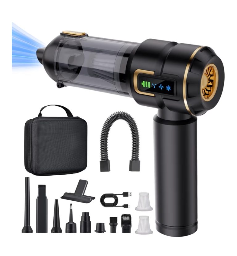 Powerful rechargeable air duster that blasts strong airflow to clean keyboards, PCs, consoles, and tight spaces—eco-friendly alternative to canned air.