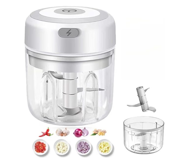 Compact electric food chopper with sharp stainless-steel blades for quick chopping of garlic, onions, nuts, and veggies—easy to use, rechargeable,