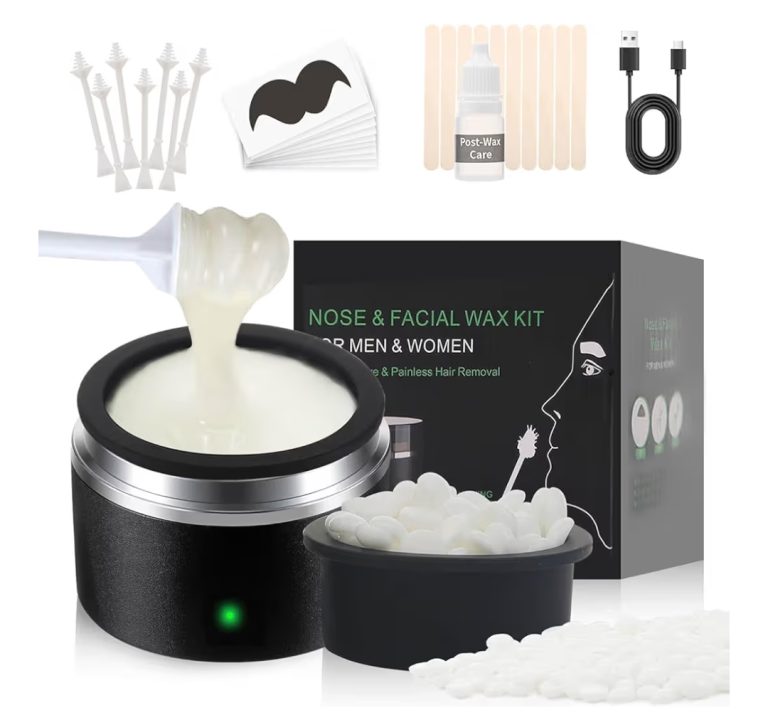 Easy-to-use nose hair removal kit with wax beads, applicator sticks, and protective tools. Safely removes unwanted nose hair from the