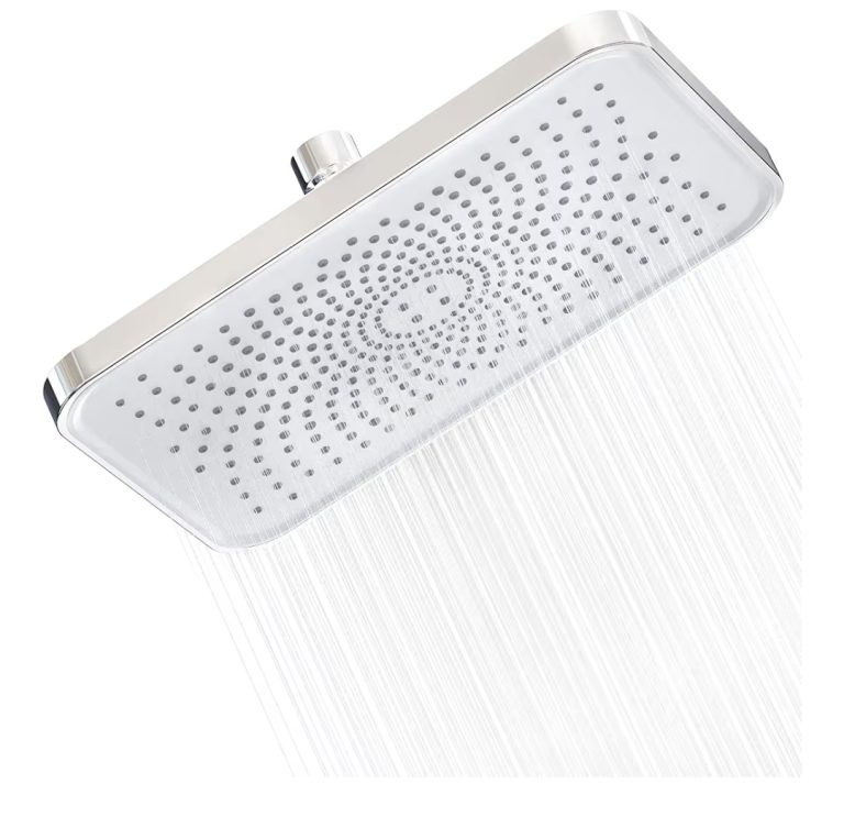 Rainfall shower head delivers a wide, even water flow for a relaxing spa-like shower experience. Sleek design with easy installation
