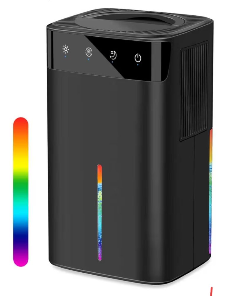 Efficient dehumidifier that removes excess moisture from the air, preventing mold, mildew, and dampness. Ideal for bedrooms, basements, and offices