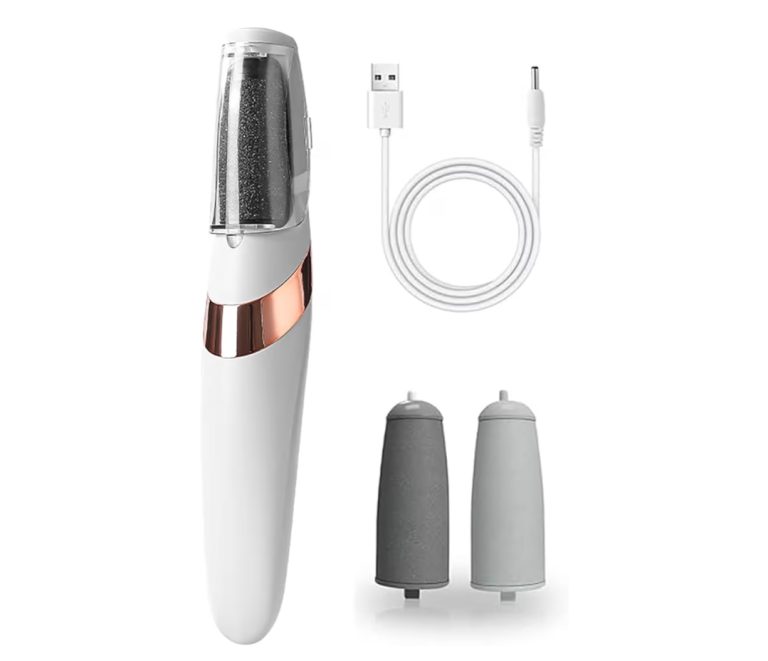 Electric foot file gently removes hard skin and calluses, leaving feet smooth and soft in minutes. Designed for safe, effective