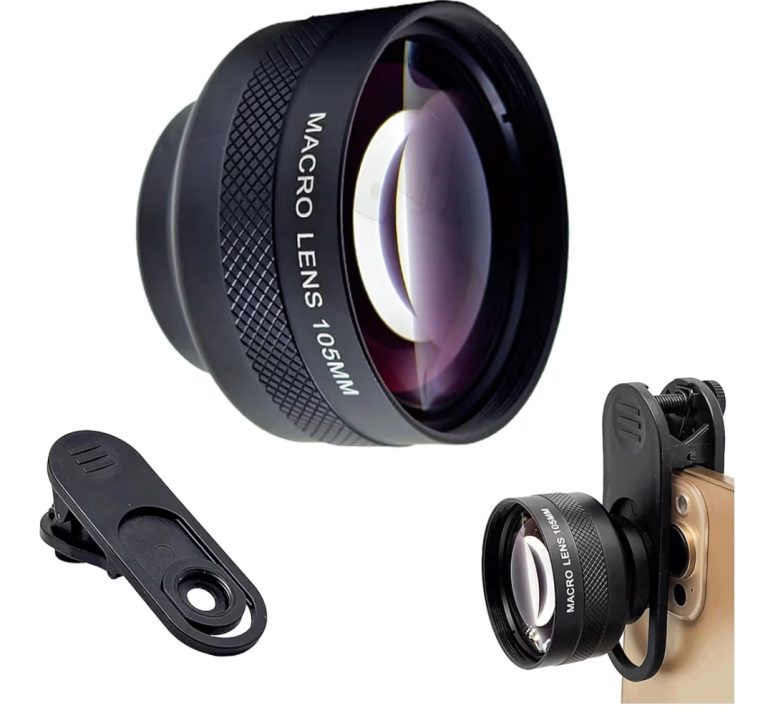 A 105mm camera lens delivers sharp, detailed images with beautiful background blur, making it ideal for portraits, close-ups, and low-light