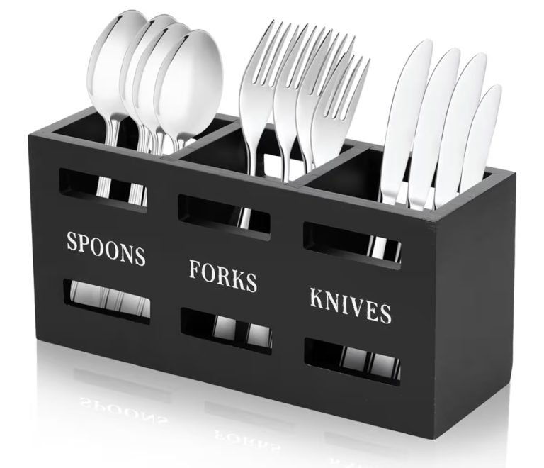 A wooden utensils holder crafted from durable, natural wood to keep your kitchen tools organized and within easy reach. It