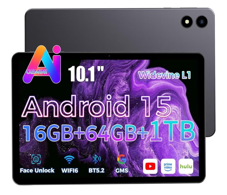 10.1″ Android 15 Tablet with a large HD display, smooth performance, and ample storage. Comes with 16GB RAM and 64GB