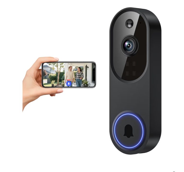 A smart video doorbell that lets you see, hear, and speak to visitors remotely. Features real-time video, motion detection, and
