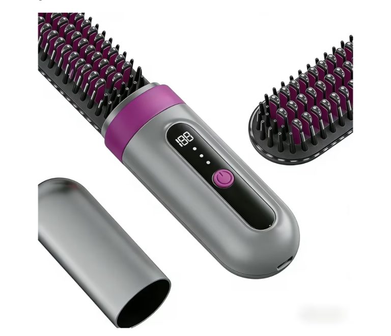 A hair straightener brush combines the ease of brushing with the power of heat styling to smooth and straighten hair