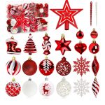 Christmas tree baubles set featuring assorted colors and finishes for festive decorating. Made from shatterproof material, lightweight, and easy to hang—perfect for adding sparkle to your holiday tree.