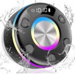 Waterproof Bluetooth shower speaker with powerful sound, built-in mic, and strong suction cup — perfect for enjoying music and calls in the shower or outdoors.
