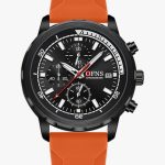 Men’s sports watch: A stylish chronograph watch featuring a bold black dial, multiple sub-dials, and a bright orange silicone strap. Designed for everyday wear, it combines sporty looks with reliable…