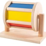 Wooden Montessori spinning drum for babies. Bright, safe, and smooth design encourages sensory play and early learning for toddlers.