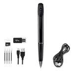 Discreet spy camera pen with hidden HD recording. Functions as a regular pen while capturing video and photos secretly.