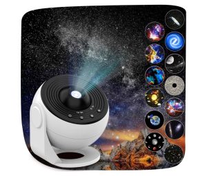 Galaxy Star Projector – Transform your room into a magical night sky with this rotating star projector. It displays stunning galaxy, moon, and space scenes