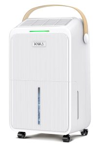 A compact, high-efficiency dehumidifier designed to remove excess moisture from bedrooms, basements, and living spaces. It features a sleek portable design with a carry handle,