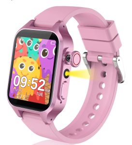 Kids’ smart watch with touchscreen, camera, games, and GPS tracking—fun, educational, and helps parents stay connected with their children.