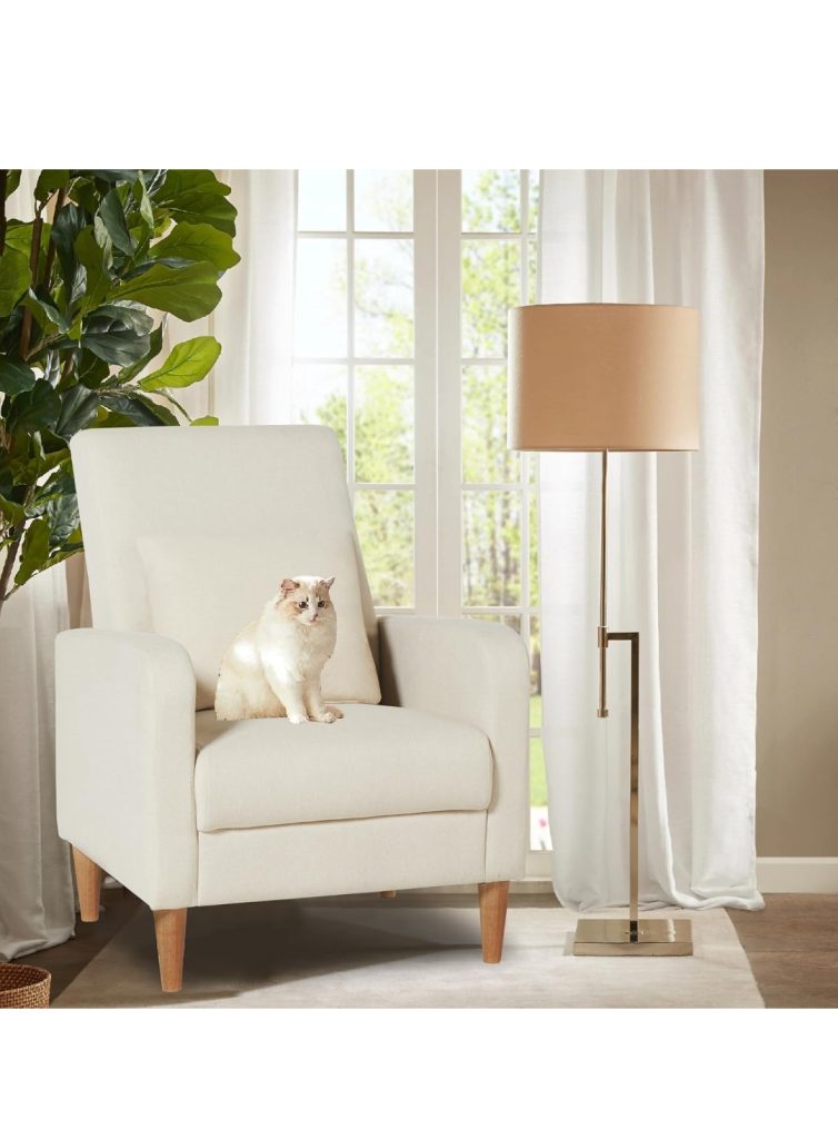 It features a sleek design with soft fabric upholstery and comes with a matching pillow for added comfort and style. The chair is supported by sturdy legs, providing both stability and durability. This accent chair is ideal for enhancing the aesthetic appeal of any space while offering a cozy seating option.