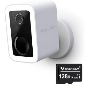 Weatherproof 2K security camera with 128GB micro SD card, dual-band WiFi (2.4GHz & 5GHz), PIR motion detection, colour night vision, and two-way audio—ideal for clear