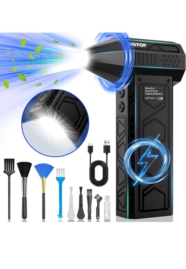 The Hostop Air Duster is a powerful, eco-friendly alternative to traditional canned air. It features a rechargeable battery and multiple speed settings, designed for cleaning electronics, keyboards, and other delicate surfaces by blowing away dust and debris with strong, focused airflow.