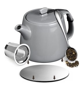 Teapot with built-in strainer for easy brewing of loose tea. Heat-resistant design with comfortable handle, perfect for making fresh and flavorful tea at home. ☕