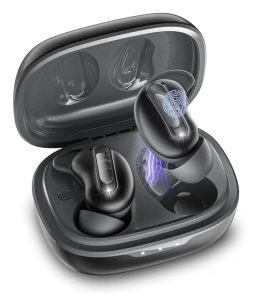 Wireless earbuds offer clear sound and deep bass with a comfortable, secure fit. Compact and lightweight, they feature stable Bluetooth connectivity, touch controls, and long-lasting