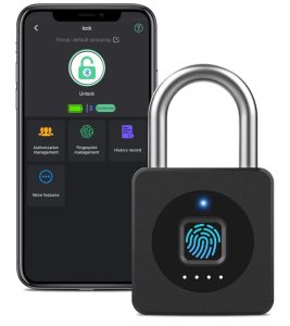 A smart fingerprint padlock that offers secure, keyless access with advanced biometric technology. Easily unlock it with your fingerprint or via a mobile app, making