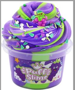 Soft and stretchy puff slime designed to look like grape ice cream. It’s non-sticky, mess-free, scented, and safe for kids. Great for stress relief, ASMR