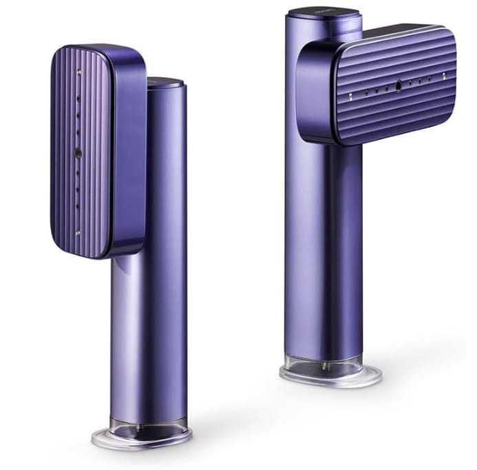 The Nesmar G5 Cloth Steamer is a compact, lightweight (1 lb) handheld garment steamer with 1,200 watts of power. It heats up in 18 seconds and provides up to 10 minutes of continuous steam. Its rotating heating head enables both vertical steaming and horizontal ironing, making it ideal for travel and home use.