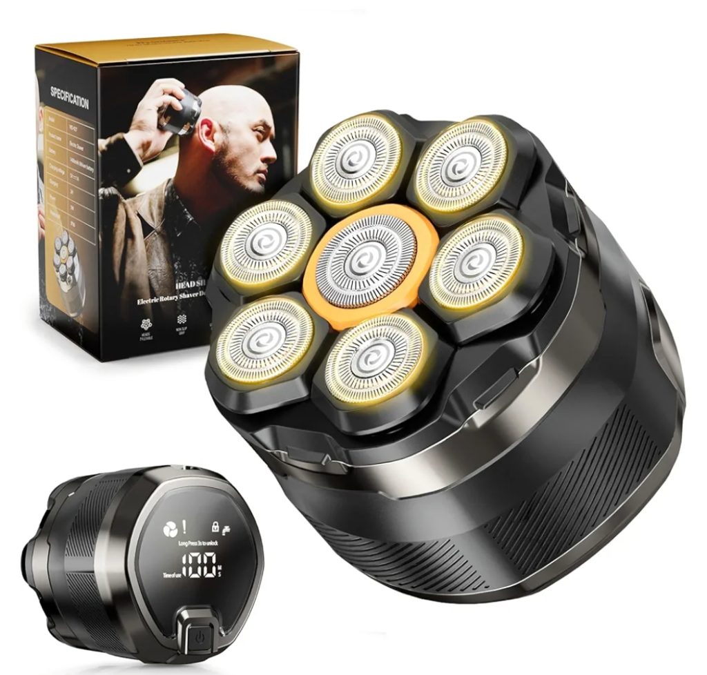 The Dyoonoer Head Shaver is a 7D floating head shaver designed for a smooth, efficient shave. It features waterproof construction for wet or dry use, fast Type-C charging, an LED display, and a travel lock for convenience and precision grooming.