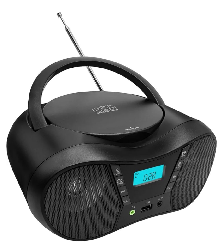 The CTDZLED Portable CD Player Boombox is a versatile audio system with a built-in CD player, Bluetooth connectivity, FM radio, and USB/AUX support. It features high-quality stereo sound, a compact and lightweight design, and easy-to-use controls, making it ideal for home, travel, or outdoor use.
