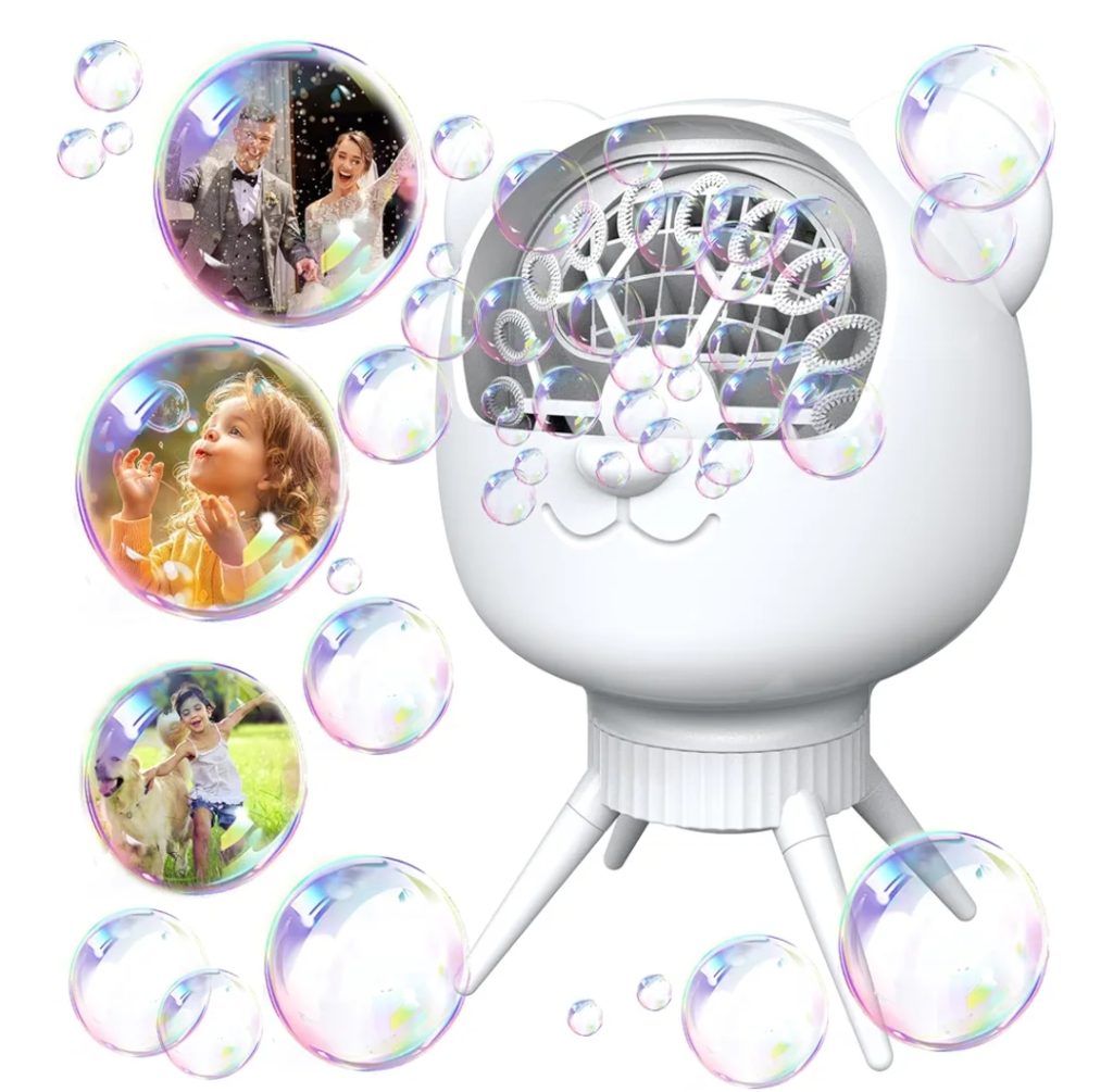 “Make playtime magical with this fun and easy-to-use bubble machine! Perfect for kids, it creates hundreds of bubbles per minute for hours of outdoor or indoor entertainment.”
