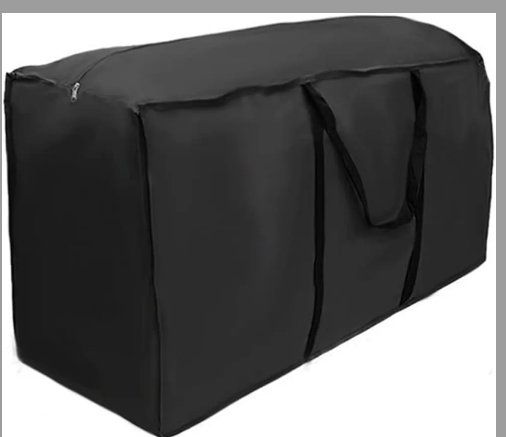 A garden cushion storage bag is a large, weather-resistant bag designed to store and protect outdoor cushions, seat pads, or garden furniture accessories when not in use. Made from durable materials like heavy-duty polyester or PVC-coated fabric, it helps shield contents from dust, dirt, moisture, and UV rays. Most feature zippered closures, reinforced handles for easy carrying, and are foldable for compact storage.