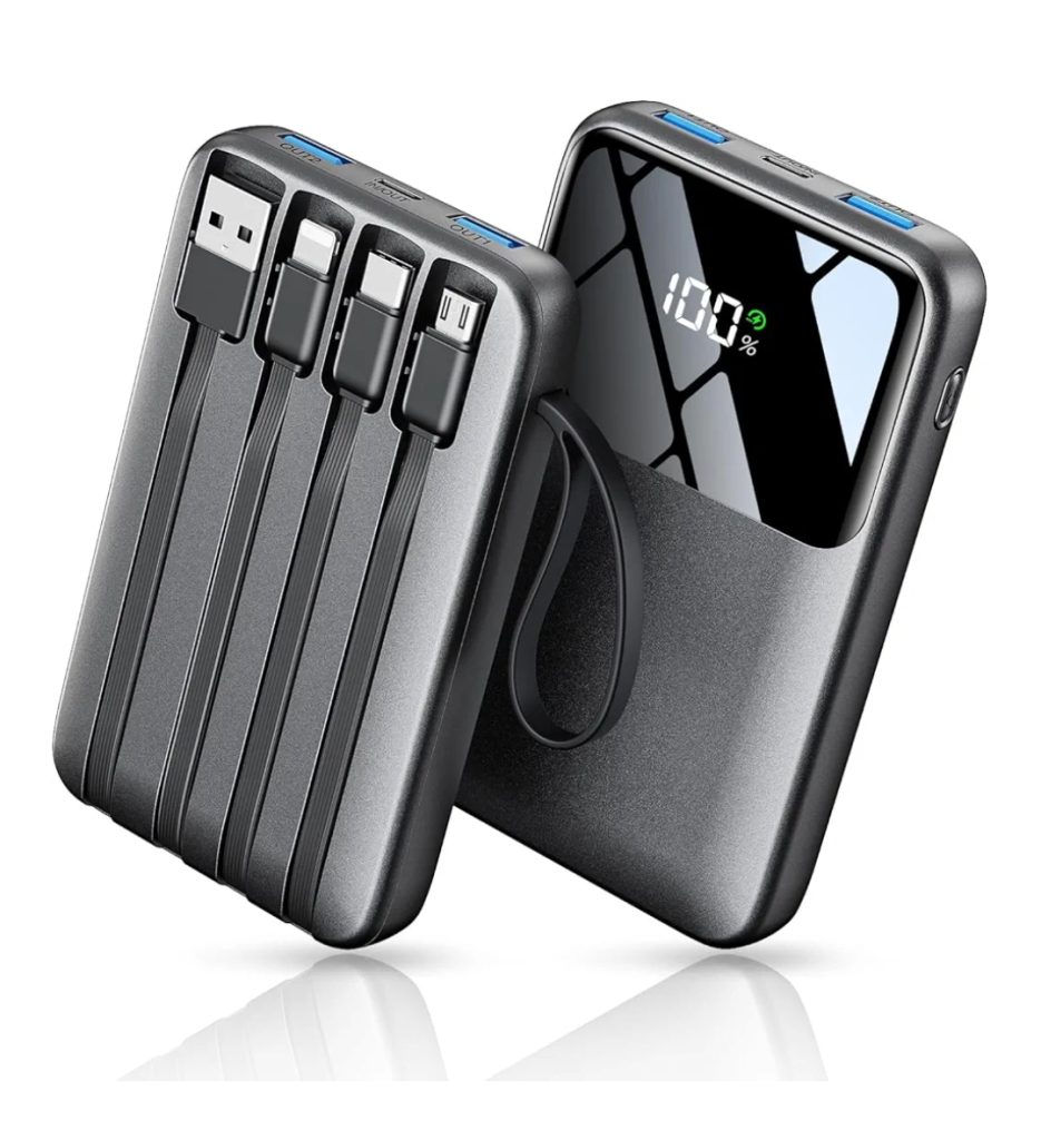 A compact, rechargeable battery pack designed to charge your iPhone on the go. Features a Lightning cable or USB output, ensuring fast and reliable charging. Ideal for travel, emergencies, or daily use