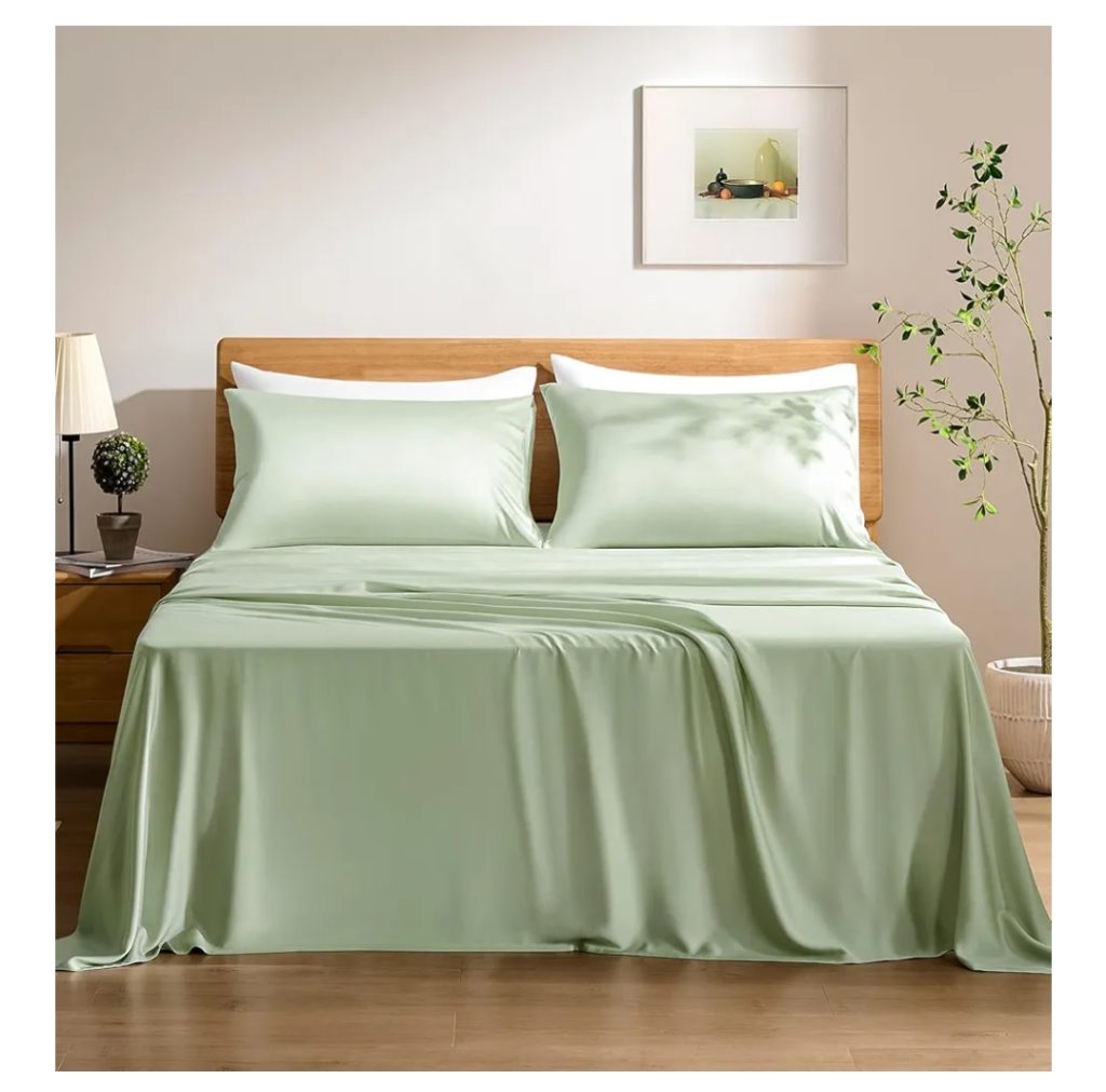 Premium luxury cooling sheets made from breathable, moisture-wicking fabric that regulate temperature for a cool, comfortable, and restful night’s sleep.