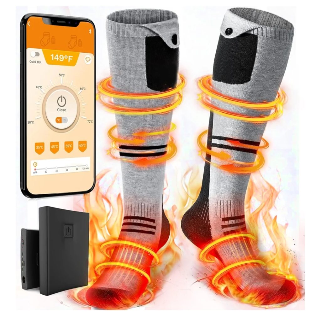 Rechargeable heated socks keep your feet warm with built-in heating elements and adjustable temperature settings, powered by rechargeable batteries for all-day comfort in cold weather.