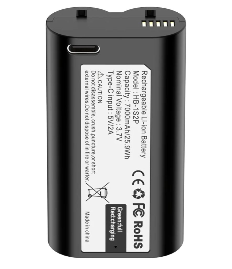 Rechargeable Li-ion battery with 7000mAh capacity, Type-C input, and durable design, ideal for powering compatible electronic devices.