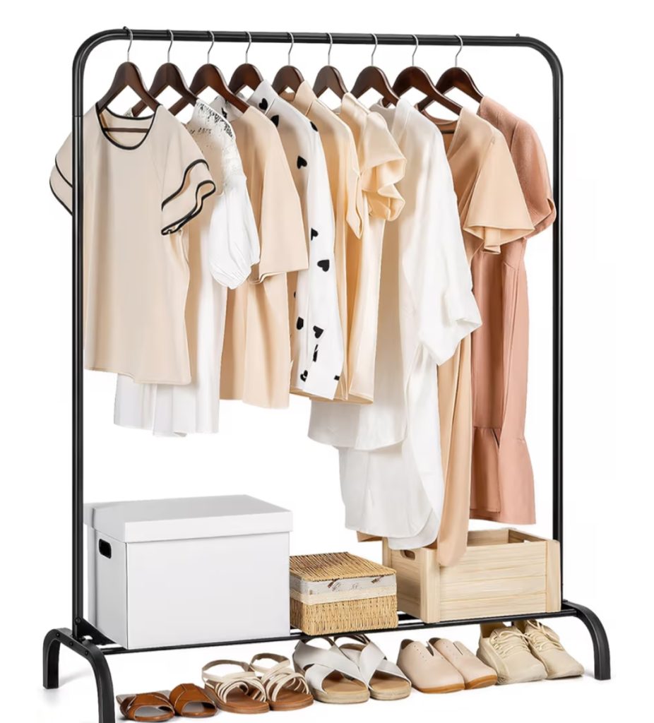 Clothes rail – Sturdy and space-saving garment rack for hanging clothes. Features durable metal construction, easy mobility, and adjustable height for home or shop use.