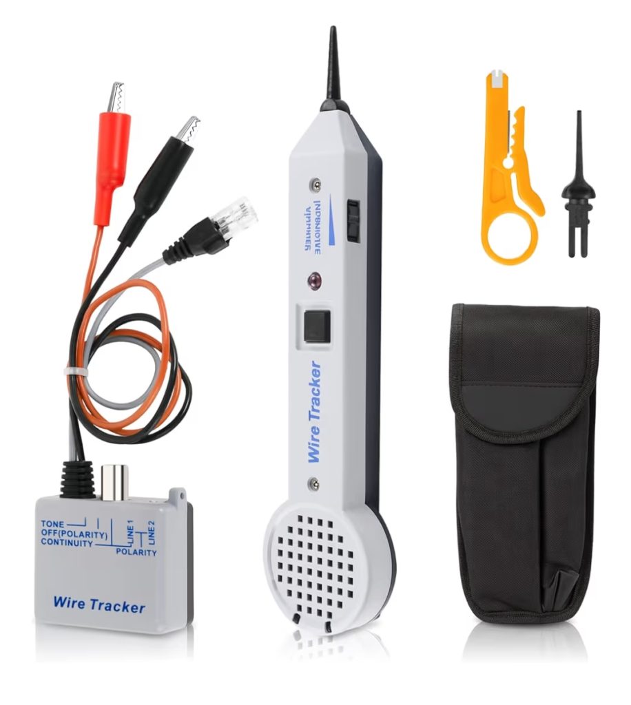 Tone generator kit designed for testing, troubleshooting, and tracing cables or circuits. Ideal for electricians, technicians, and DIY users for quick signal detection and wire identification.