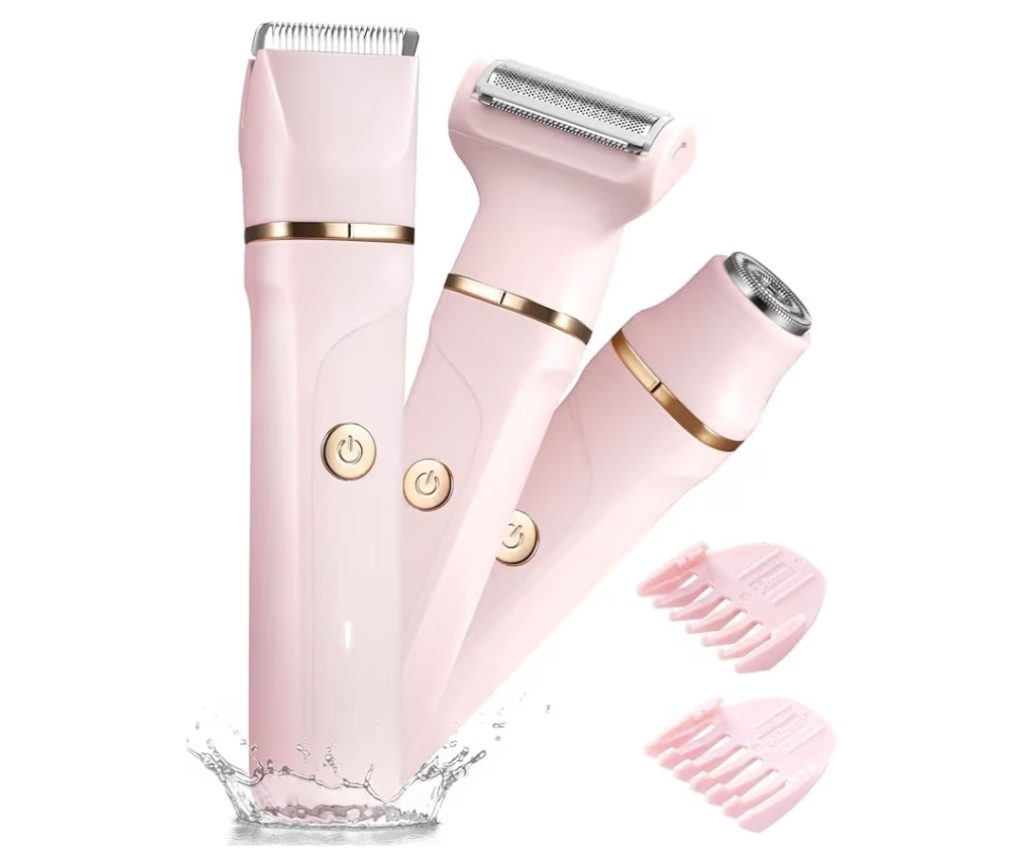 Versatile grooming tool with interchangeable heads for trimming, shaping, and shaving the bikini area—gentle, precise, and perfect for smooth results.