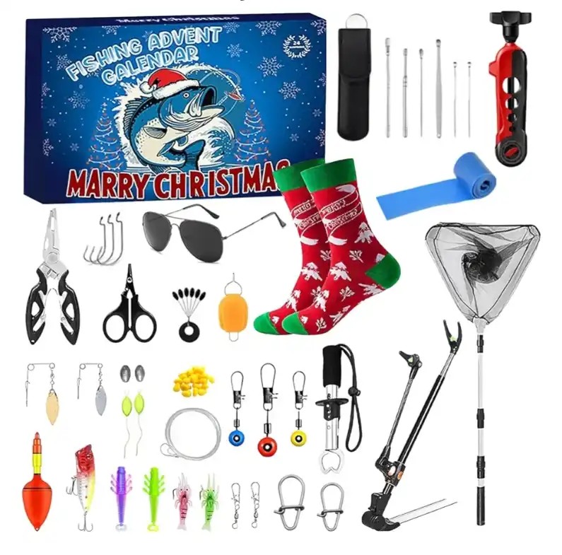 A fun countdown calendar filled with daily fishing surprises like lures, hooks, and accessories. Perfect for anglers, offering a new mini fishing gear item each day leading up to the holidays.