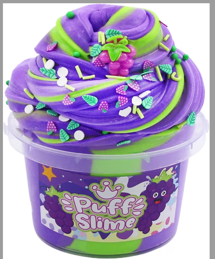 Soft and stretchy puff slime designed to look like grape ice cream. It’s non-sticky, mess-free, scented, and safe for kids. Great for stress relief, ASMR play, party favors, and fun sensory activities.