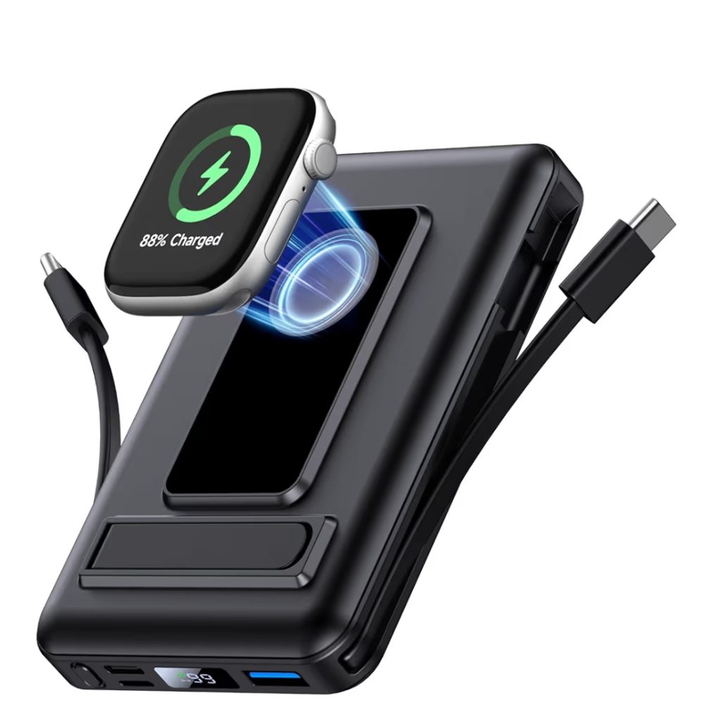 MagSafe power bank designed for effortless wireless charging with a strong magnetic hold that snaps securely onto your phone. Compact and lightweight, it delivers fast,