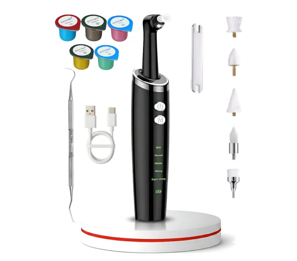 Teeth polisher is a handy oral care tool designed to gently remove surface stains, plaque, and discoloration from teeth, helping restore natural whiteness. It features soft polishing heads that are safe for home use and improve overall dental hygiene when used regularly.