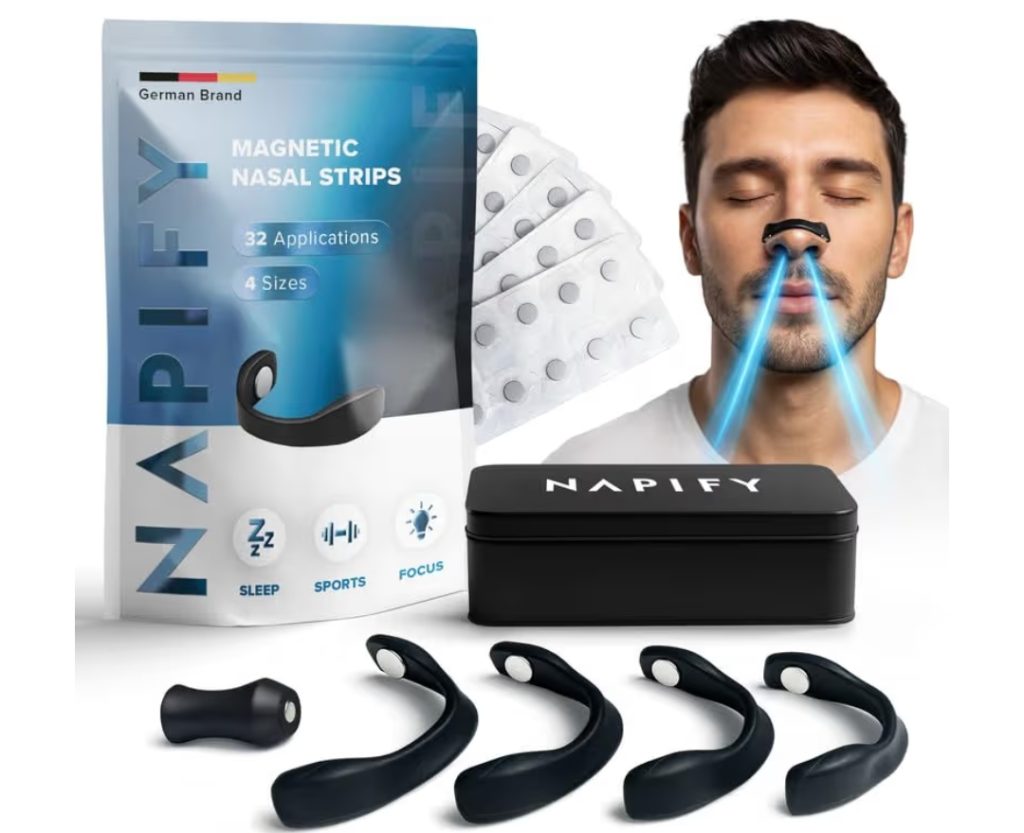 Slim magnetic strips that open nasal passages to improve airflow, reduce snoring, and support easier breathing.