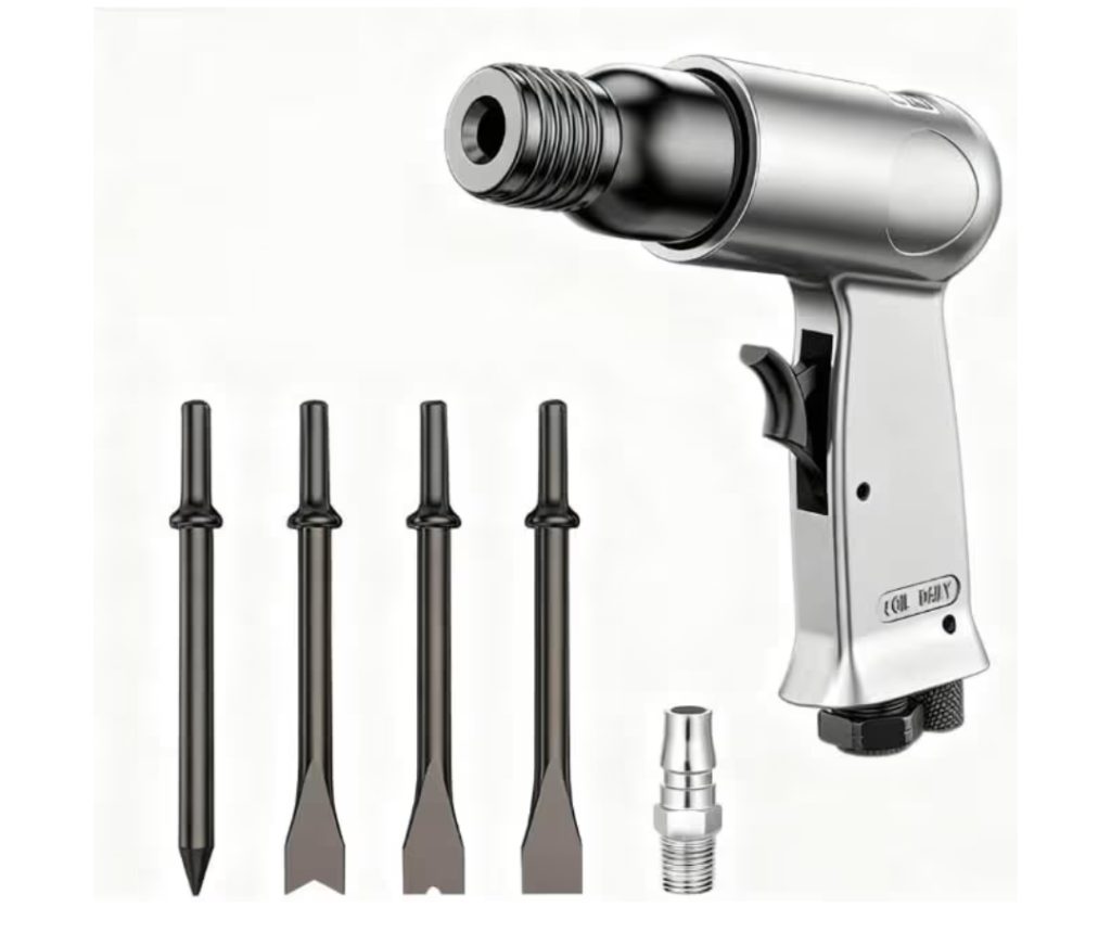 Air chisel hammer kit provides powerful pneumatic performance for cutting, chiseling, and removing rust, welds, and tiles. Durable construction with multiple chisel attachments makes it ideal for automotive, metalwork, and general workshop use.