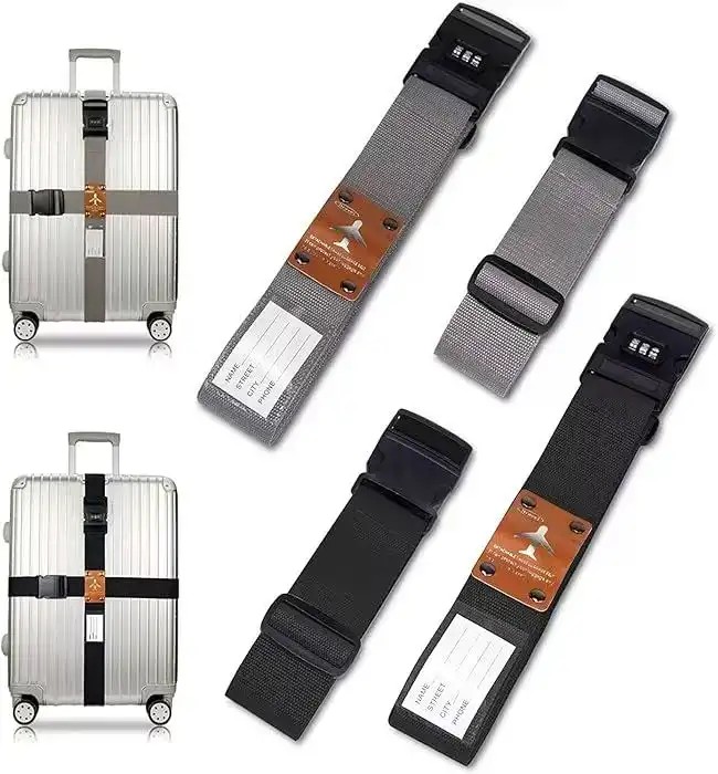 Luggage straps are adjustable belts used to secure suitcases and bags during travel. They help keep luggage closed, prevent accidental opening, and make bags easy to identify at the airport.